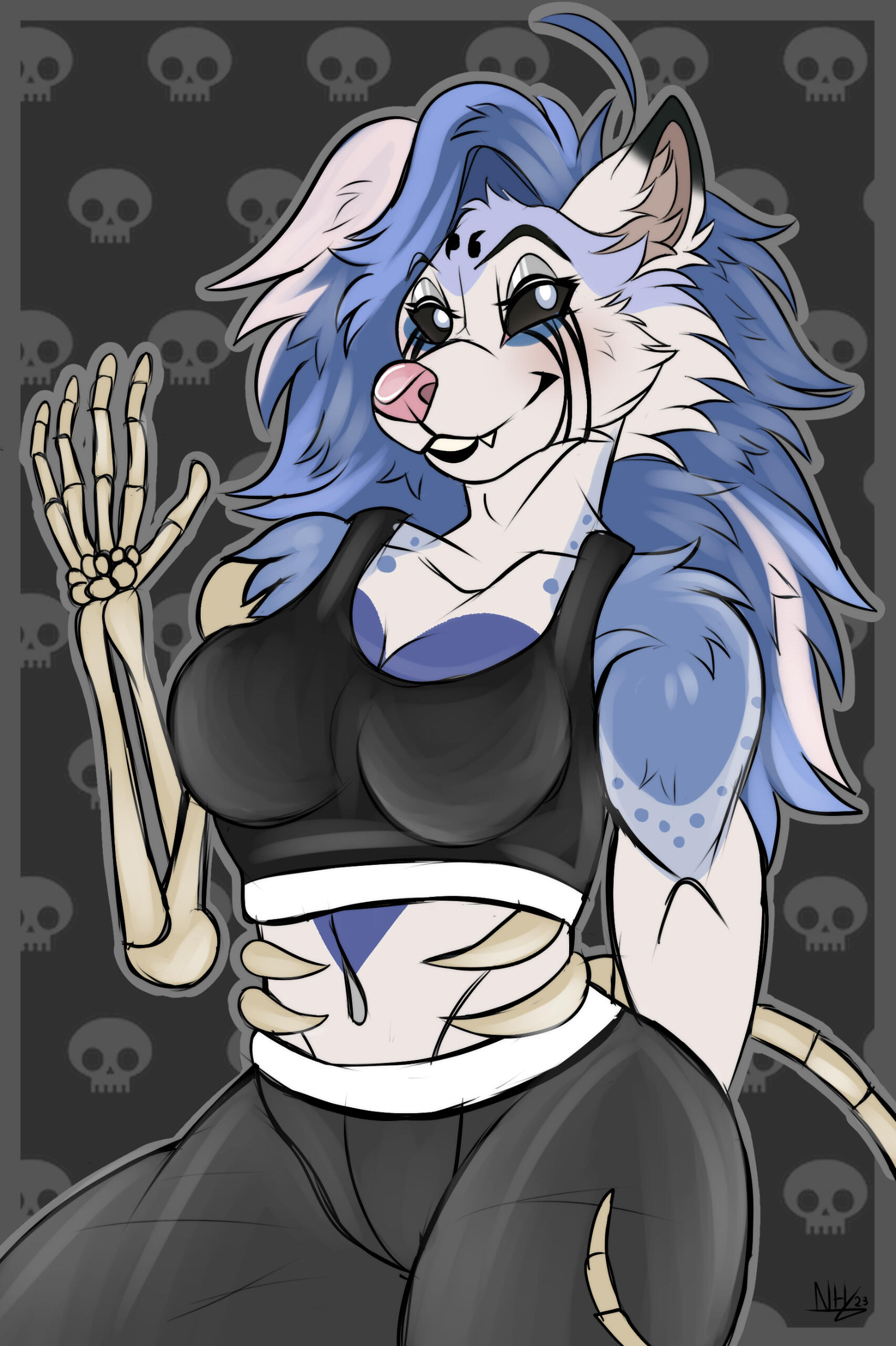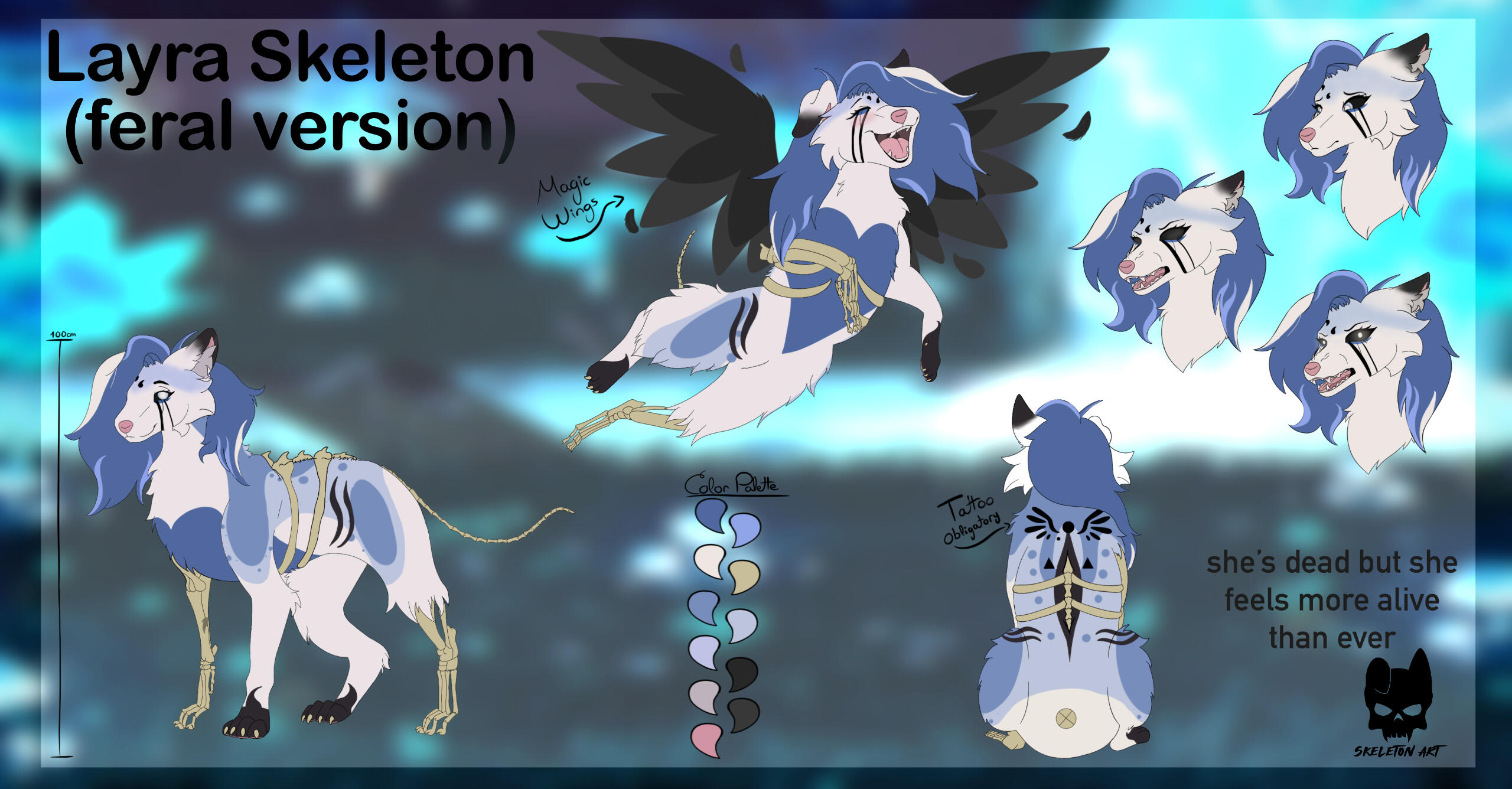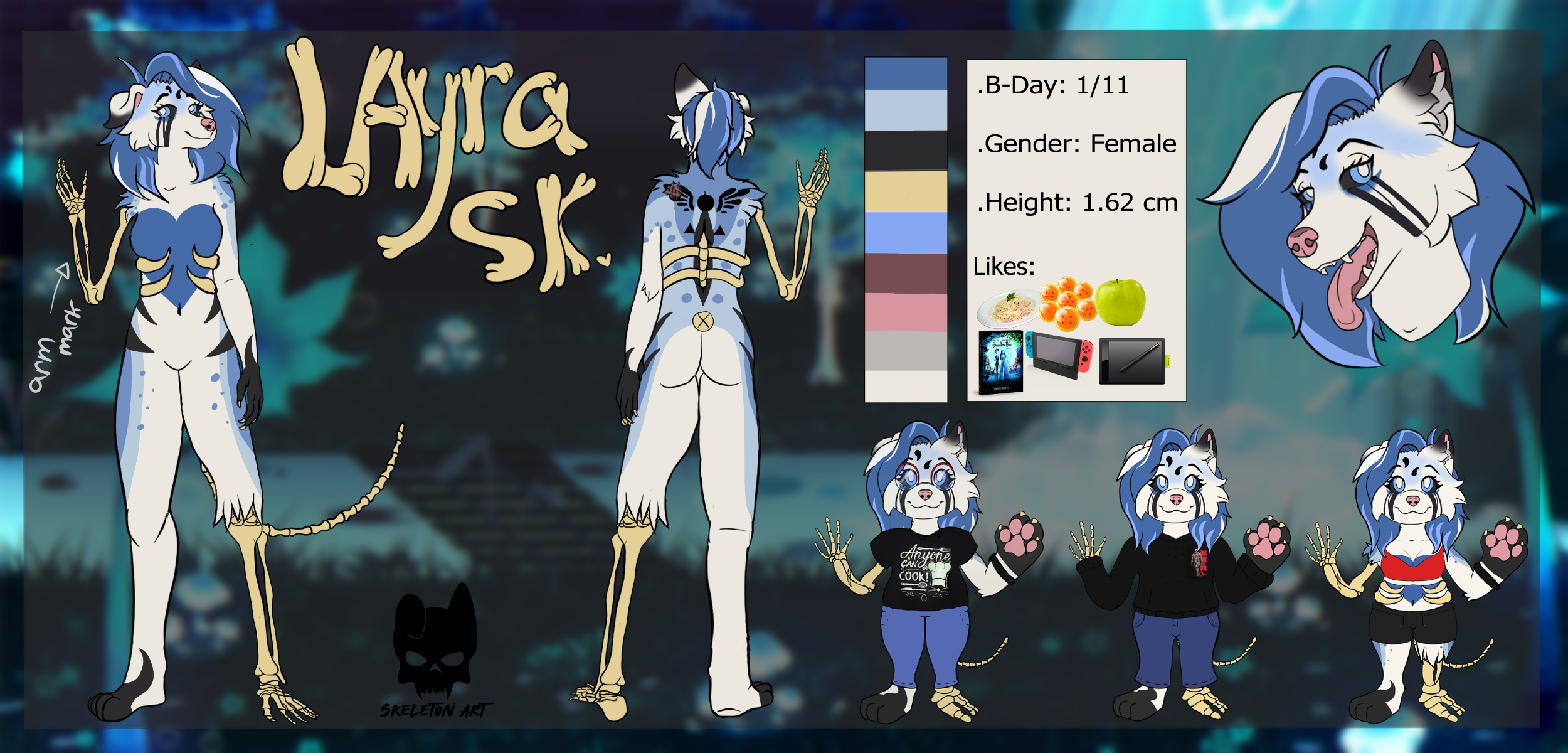 Hi everyone, my name is LayraSkeleton, I am 24 years old and I am a Canary Islands artist who enjoys life.My fursona is an undead Dog/Wolf hybrid standing 1.62 meters tall, inspired by The Corpse Bride, Day of the Dead, Undertale, and my personal life. She has a kind personality, somewhat shy and helpful with her friends (although she sometimes has a bad temper).